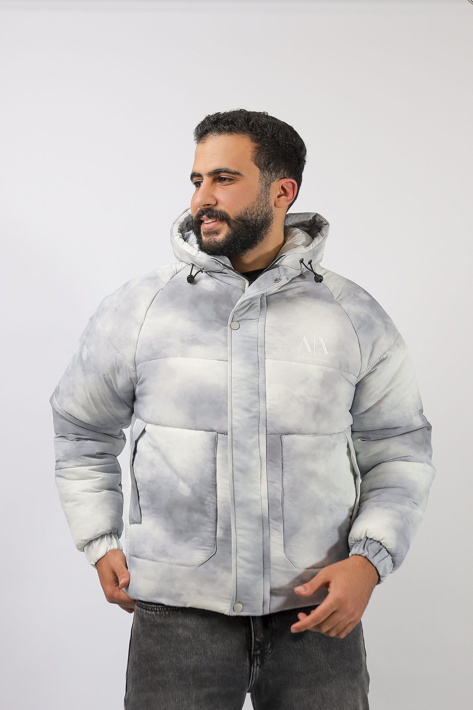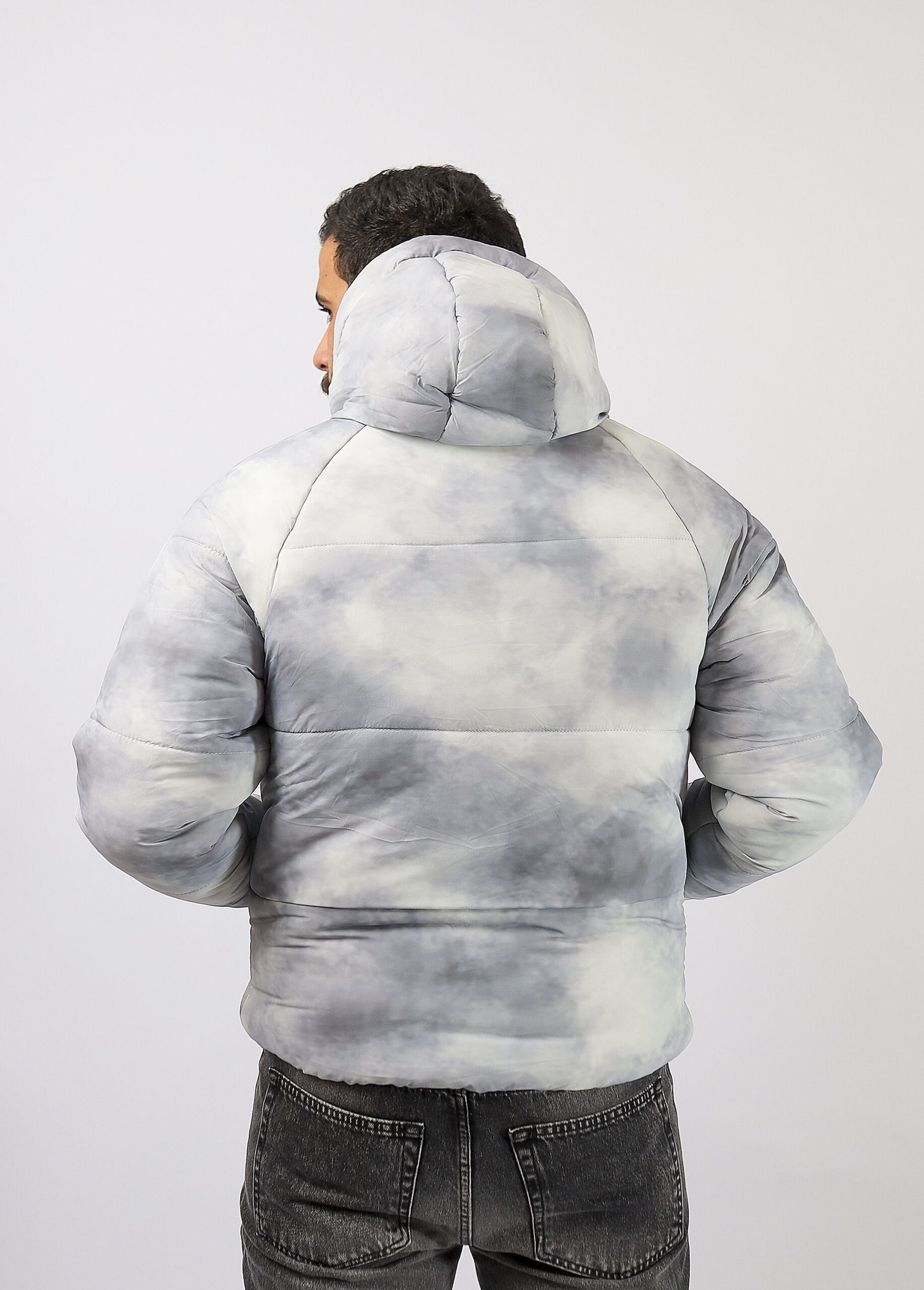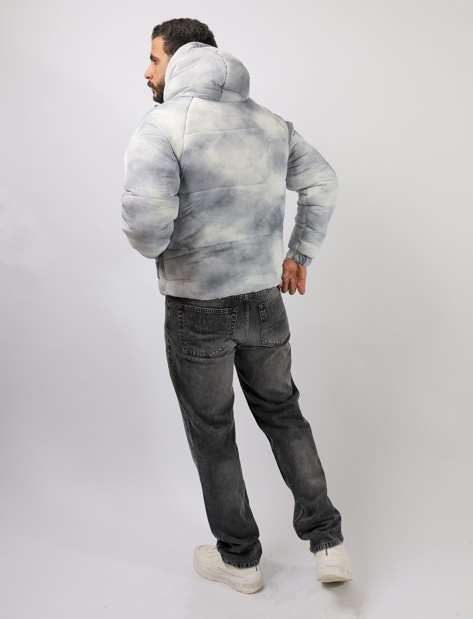 جاكيت رجالي شتوي مبطن بتصميم رمادي ثلجي بتدرجات دخانية (ستايل Cloud / Marble) يعطي شكل عصري وهادئ في نفس الوقت. خامته دافية وخفيفة، مناسب للشتاء والخروجات اليومية بدون ما يحسسك إنك لابس “بطانية رسمية”.
